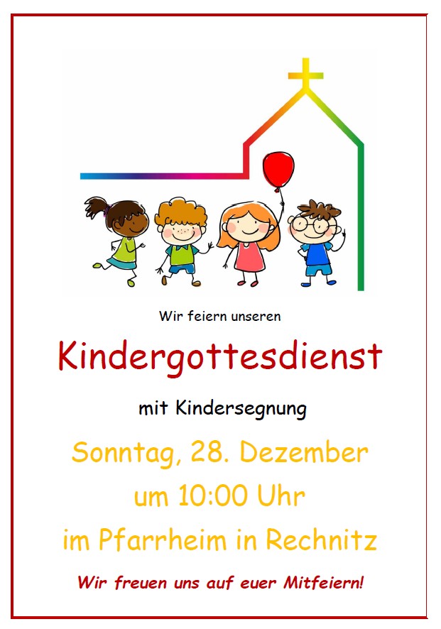 ![]() | Kindergottesdienst Dezember2025Am Sonntag, 28.12.2025, findet um 10 Uhr, im Pfarrheim der Kindergottesdienst statt. Das Thema des Gottesdienstes vom November war "1.Advent" Fotos vom Dezember 2024 findest du hier: photos.app.goo.gl/KkV8bmiKMzmSoYrv5 Fotos vom Jänner 2025 findest du hier: photos.app.goo.gl/6HcPv4UNRYUwzqch7 Fotos vom März 2025 findest du hier: photos.app.goo.gl/2VoreG4431xqcDBr6 Fotos vom Juni 2025 findest du hier: photos.app.goo.gl/guofTDa5gyX7XewCA Fotos vom September 2025 findest du hier: photos.app.goo.gl/JNUtMaaaYxac2Nor7 Fotos vom Oktober 2025 findest du hier: photos.app.goo.gl/W4J2qtSVN4B3NYmg6 Fotos vom November 2025 findest du hier :photos.app.goo.gl/To1ywEyEi5PyCMgq8 |